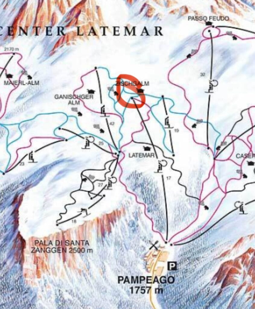 Nasze zajęcia startują w Pampеago przy górnej stacji Ski Center Latemar.